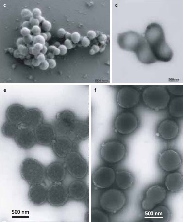 השוואה בין תאים יחידים (למטה) ומושבות (למעלה) של M. mycoides שמקורו בגנום הסינתטי (משמאל)